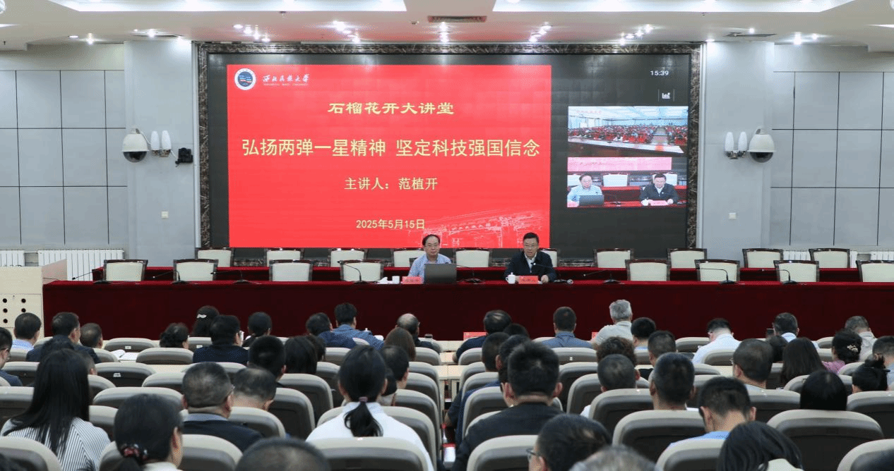 5月15日,全国“大思政课”实践教学基地特聘专家、“两弹一星”精神专题报告主讲专家、中国工程物理研究院党校范植开教授作客学校石榴花开大讲堂,“弘扬两弹一星精神 坚定科技强国信念”专题报告。校长王彦斌主持报告会,干部师生700余人在两校区会场聆听。