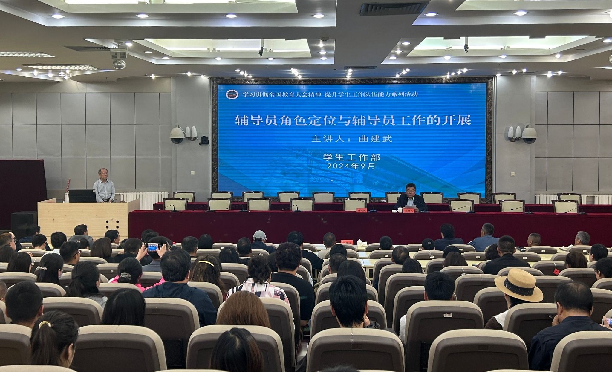 9月23日,“时代楷模”曲建武教授来校作《辅导员角色定位与辅导员工作的开展》的专题报告。学校辅导员、班导师代表近300人参加报告会。党委常委、副校长徐绍文主持并讲话。